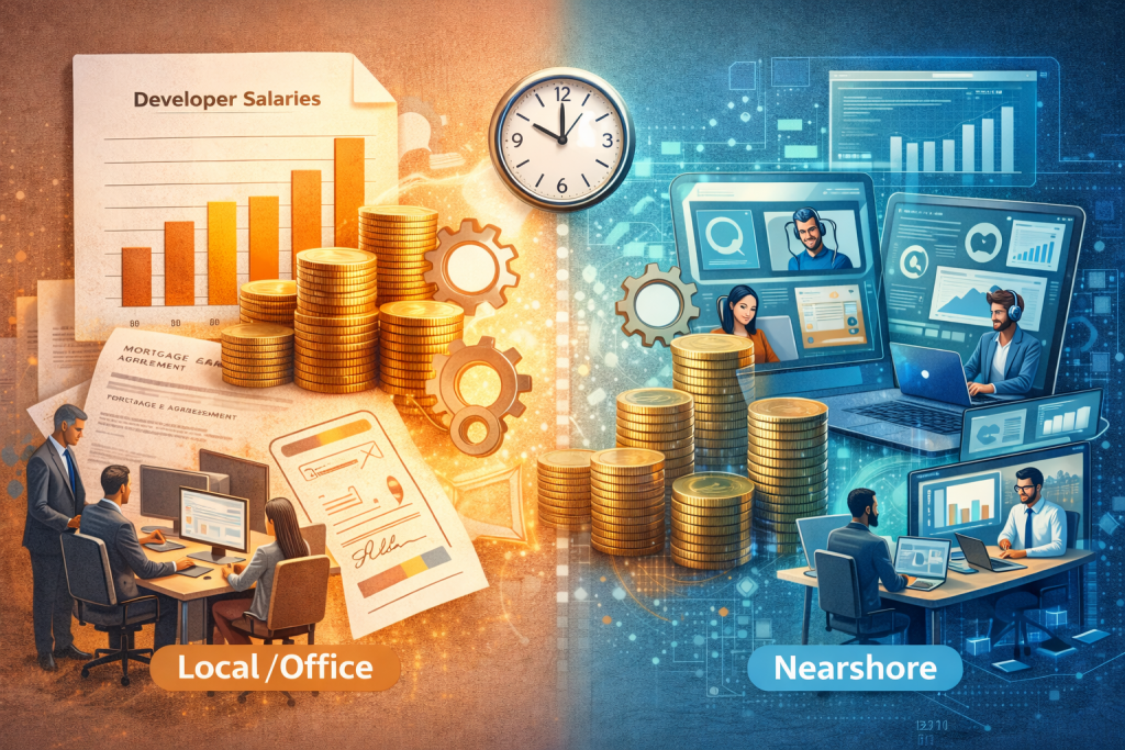Le nearshore désigne l’externalisation de services (développement logiciel, support IT, etc.) vers un pays géographiquement proche du client, généralement dans un fuseau horaire voisin. Cette proximité offre un alignement culturel et linguistique, ainsi qu’une collaboration en temps réel, se situant ainsi à mi-chemin entre l’onshore local et l’offshore lointain. L’objectif est de réunir le meilleur des deux mondes : les économies de coûts de l’outsourcing, sans sacrifier la qualité ni l’efficacité opérationnelle. En effet, en recrutant via une entreprise nearshore de haut calibre, on peut obtenir des talents de premier plan sans les surcoûts massifs d’un recrutement local, ce qui se traduit par des économies significatives.